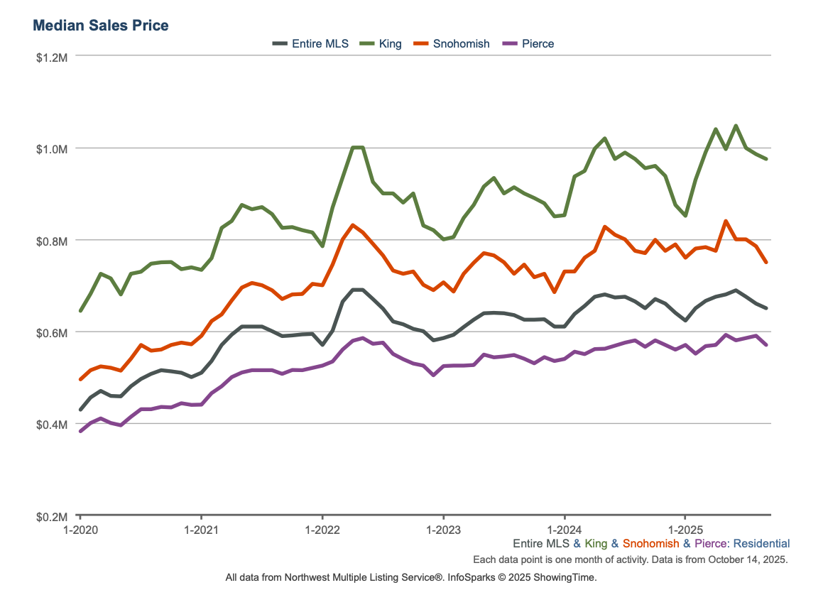 With the data from September 2025 in, here’s an overview of the key aspects of the local real estate market. The real estate data below is collected from Northwest Multiple Listing Service (NWMLS).