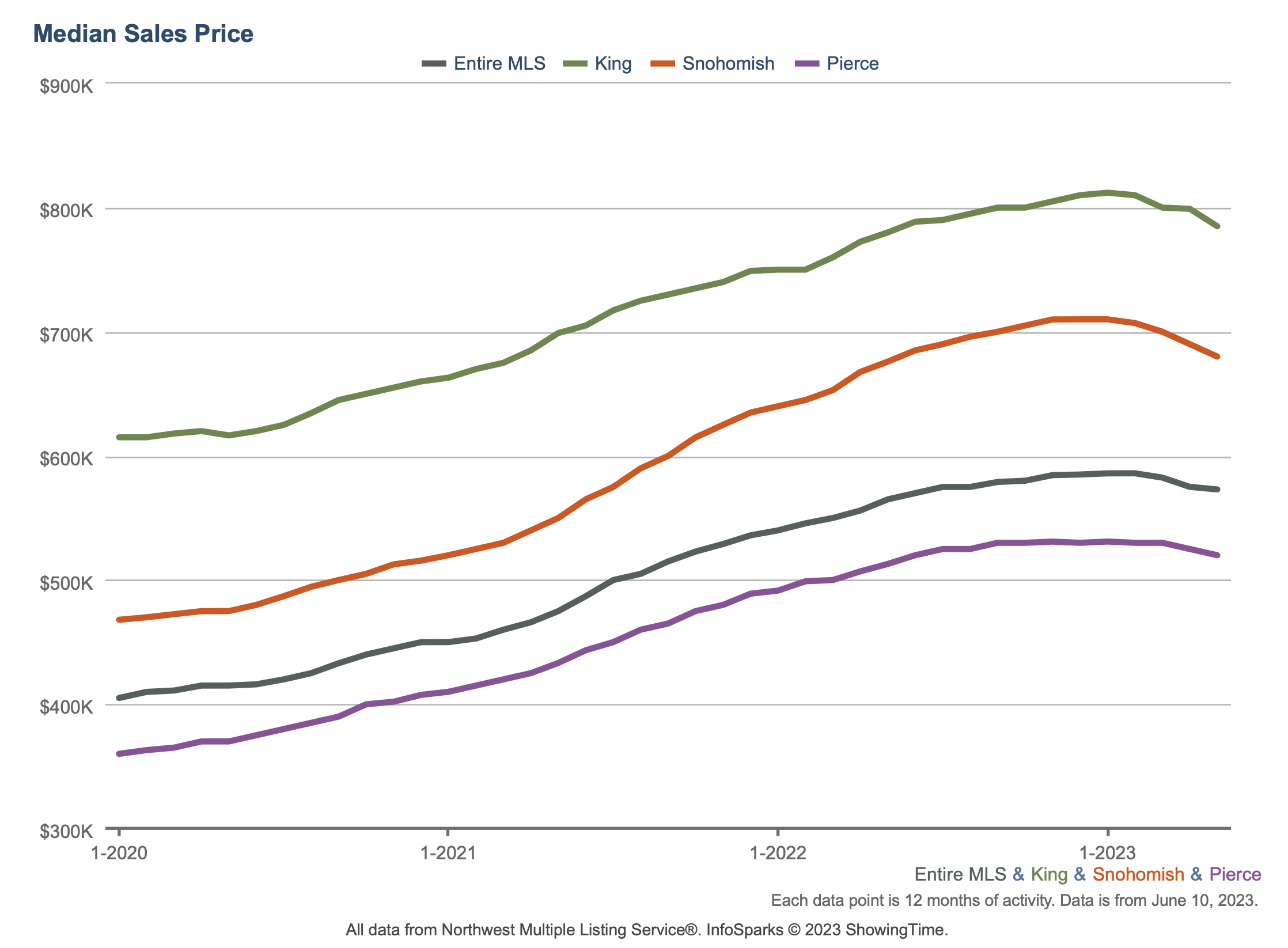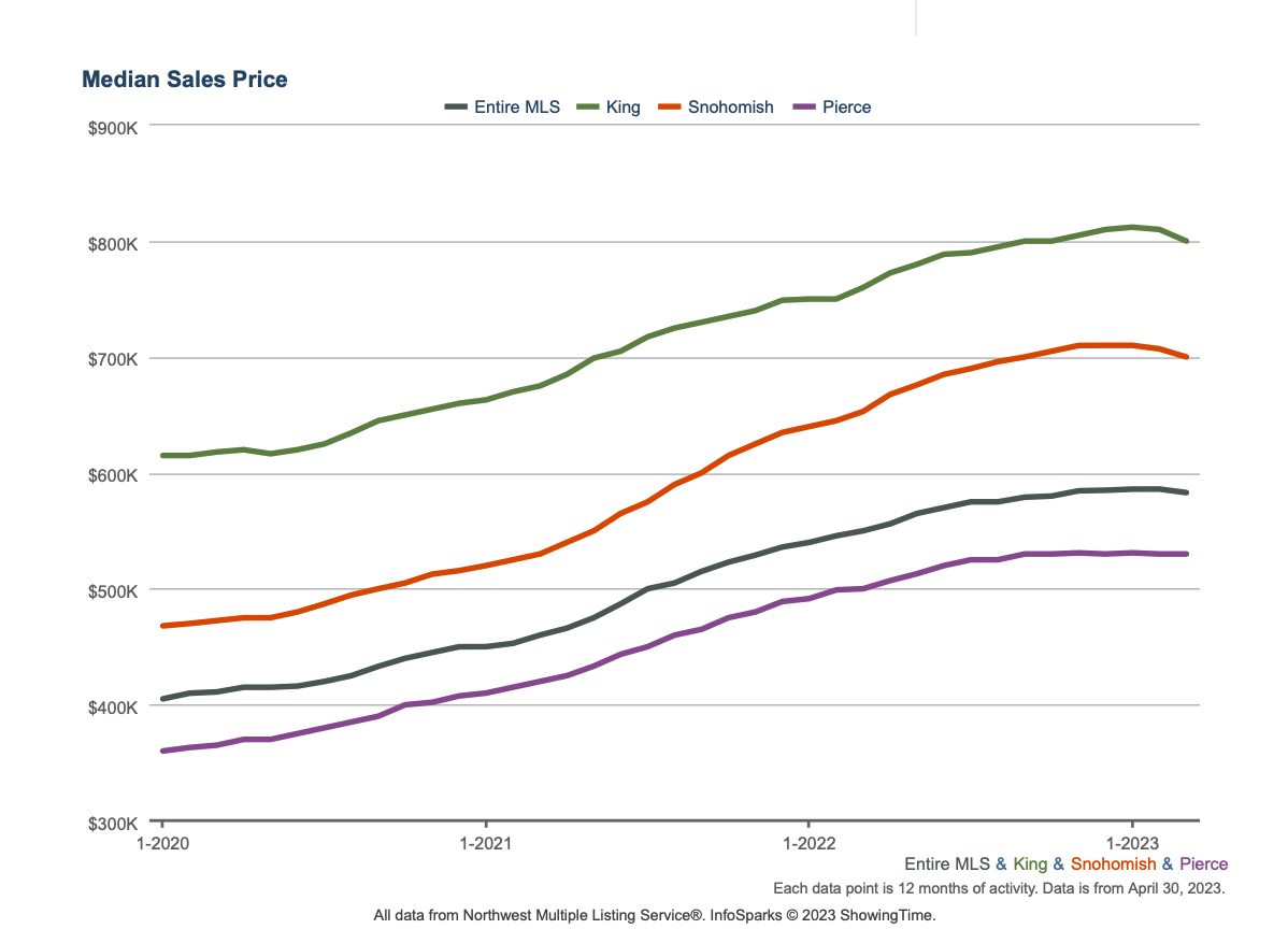 And here are the median sale prices of residential properties in the Greater Seattle area over the past three years: