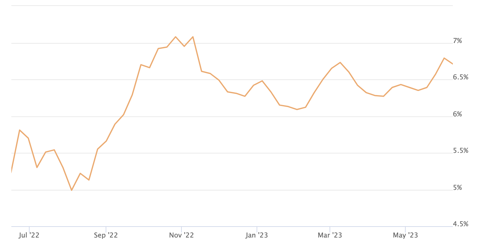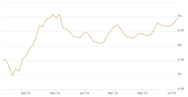 Average 30-Year Fixed Mortgage Rates — July 2022 to July 2023 (Source: Freddie Mac)