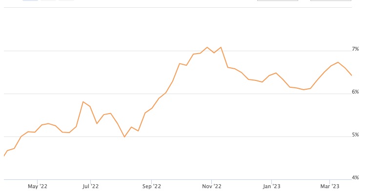30 Year Fixed Mortgage Rates — February 2022 to February 2023 (Source: Freddie Mac)